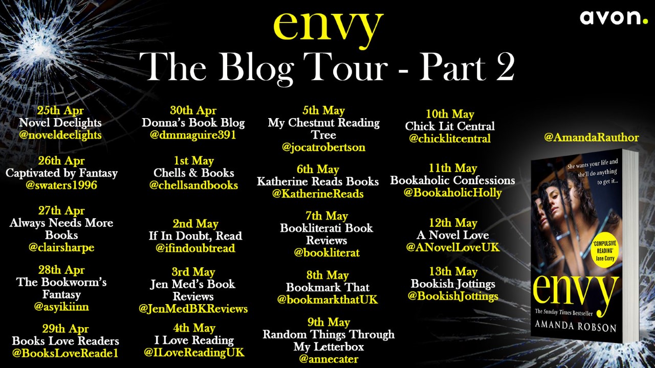Envy by Amanda Robson was published on 4 April by Avon, in paperback, digital and audio. My thanks to the publisher who sent my copy for review and who invited me to take part on this Blog Tour.