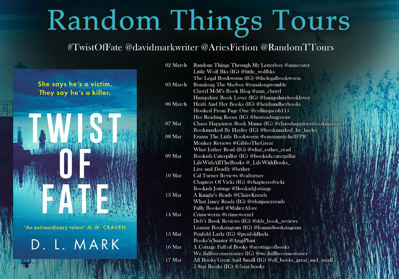 Twist of Fate by D L Mark is published by Head of Zeus / Aries Fiction on 2 March 2023. My thanks to the publisher who sent my copy for review as part of this #RandomThingsTours Blog Tour.