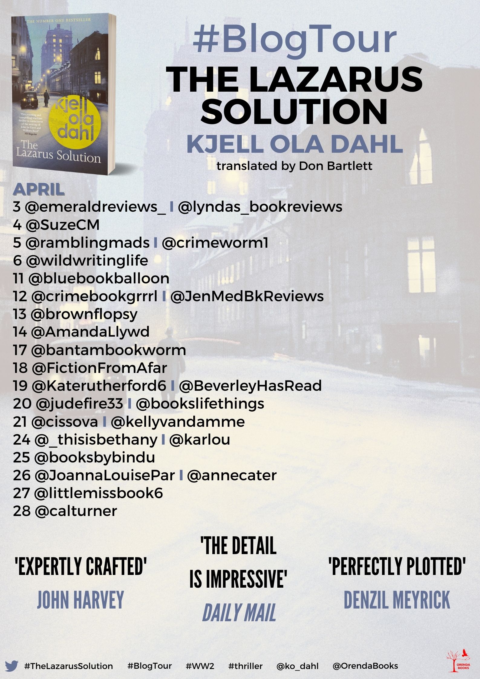 I have many years of experience arranging Blog Tours. I currently arrange all the blog tours for Orenda Books and Octopus Books ~ anything from a seven day tour up to a five week tour.